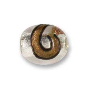 Bead, Japanese Sassoon Lampwork Glass, Crystal color with Silverfoil center, 16x14mm Flat Oval with Bronze Swirl (Hole Size 1.7mm)