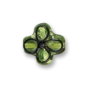 Bead, Japanese Sassoon Lampwork Glass, Chartreuse with Silverfoil, 16mm Four Leaf with Black Line (Hole Size 1.7mm)