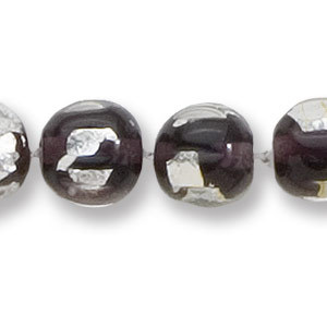 Bead, Japanese Sassoon Lampwork Glass, 10mm Round with Silverfoil chips – Dark Amethyst (Hole Size 1.7mm)