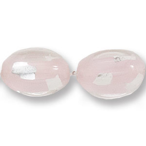 Bead, Japanese Sassoon Lampwork Glass, 14x10mm Oval with Silverfoil chips – Opal Pink (Hole Size 1.7mm)