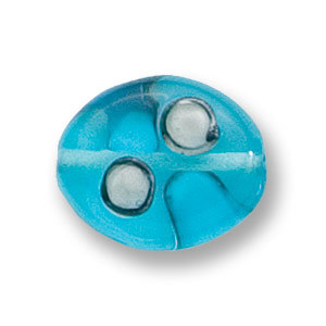 Bead, Japanese Sassoon Lampwork Glass, 19x16mm Flat Oval – Sapphire with White Dots (Hole Size 1.7mm)