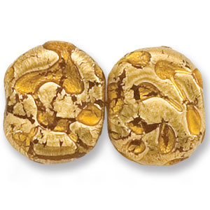 Handmade by skilled artisans, these exquisite lampwork beads feature a textured swirling of glass and goldfoil. Use these gorgeous beads in your designs with gold or glass accents for truly stunning results. Beads and their hole sizes may vary slightly, as they are handmade.