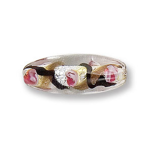 Bead, Japanese Sassoon Lampwork Glass, 28x11mm Oval bead with Silverfoil and Colorswirl – Black (Hole Size 1.7mm)