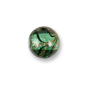 Bead, Japanese Sassoon Lampwork Glass, 14mm Round bead with Silverfoil and Aqua Bronze Swirl – Emerald (Hole Size 1.7mm0
