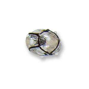 Bead, Japanese Sassoon Lampwork Glass, 14x12mm Round bead with Silverfoil, Black Net on Crystal color w/Dots (Hole Size 1.7mm)