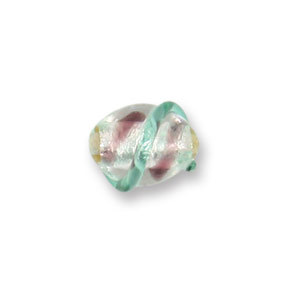 Bead, Japanese Sassoon Lampwork Glass, 14x12mm Oval bead Silverfoil with Spiral pattern – Amethyst/Green (Hole Size 1.7mm)