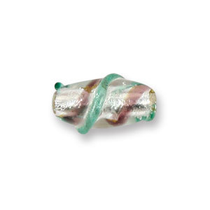 Bead, Japanese Sassoon Lampwork Glass, 20x10mm Oval bead Silverfoil with Spiral pattern – Amethyst/Green (Hole Size 1.7mm)