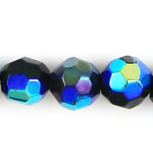 10mm faceted round (hole size: 1.1mm), Jet Black AB