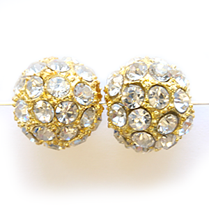 Bead, Nuvo Pave Gold Plated Metal Base with Crystals, 14mm Round (Hole Size 4mm)