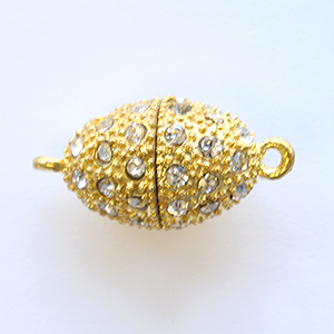 Clasp, Magnetic, 13x25mm, Gold Plated with Crystals