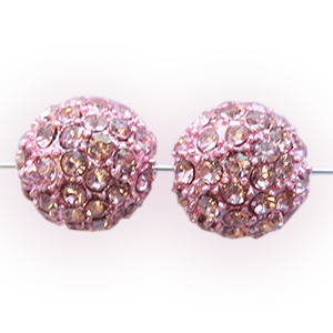 Bead, Nuvo Pave Metal Base with Crystals, 10mm Round – Light Rose (Hole Size 1.8mm)