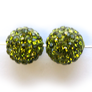 Bead, Nuvo Pave Epoxy Base with Crystals, 10mm Round – Olivine (Hole Size 1.8mm)
