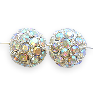 Bead, Nuvo Pave Metal Base with Crystals in AB Coating, 12mm Round Silver Plated Bead (Hole Size 1.8mm)