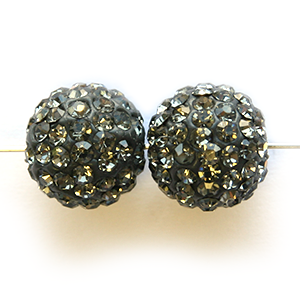 Bead, Nuvo Pave Epoxy Base with Crystals, 12mm Round – Black Diamond (Hole Size: 1.8mm)