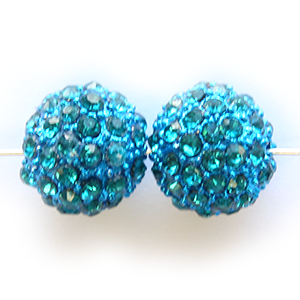 Bead, Nuvo Pave Metal Base with Crystals, 14mm Round – Aquamarine (Hole Size 3mm)