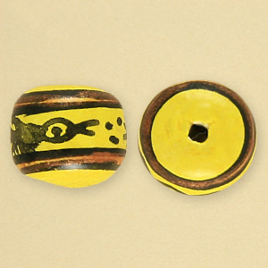 Bead, Hand Made Peruvian Clay Bead 8mm Round – Yellow with Design (Hole Size 1mm)