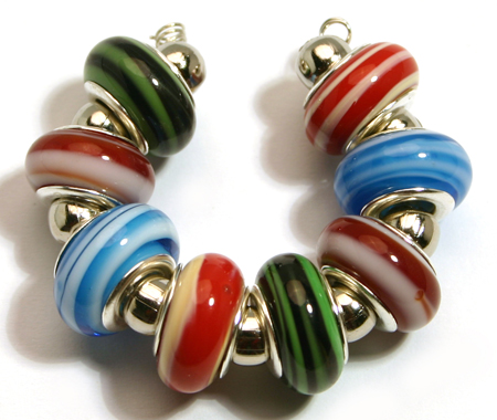 This gorgeous set contains all eight beads as shown; each bead measures approximately 9 x 13mm, but can vary slightly as they are handmade. These extremely popular and fashionable beads are designer quality in a delightfully wide array of colors and designs at fantastic low prices. Because of the large hole (6mm) and plated metal core, you can use these beads with almost any stringing material you can imagine. They are also compatible with Pandora, Troll and other large-hole glass beads. These beautiful sets come with a wonderful variety of beads for you to try- simply pair with our selection of large hole beads strung on one of our ready-to-wear snake chains for exquisite pieces of jewelry that you will love to wear.