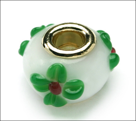 Each bead measures approximately 9 x 13mm, but can vary slightly as they are handmade. These extremely popular and fashionable beads are designer quality in a delightfully wide array of colors and designs at fantastic low prices. Because of the large hole (6mm) and plated metal core, you can use these beads with almost any stringing material you can imagine. They are also compatible with Pandora, Troll and other large hole glass beads. Simply pair with our selection of pewter Chimera Beads and string on one of our ready-to-wear snakechains for exquisite pieces of jewelry that you will love to wear.