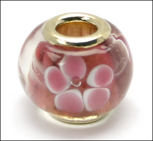 Pandora style lampwork glass bead – large hole w/gold plated core, 1pc.