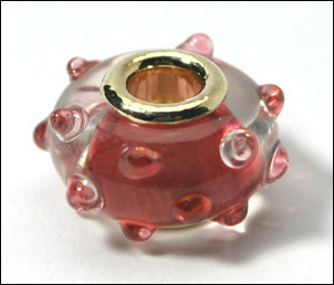 Pandora style lampwork glass bead – large hole w/gold plated core, 1pc.
