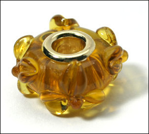 Pandora style lampwork bead – large hole w/gold plated core, 1pc.