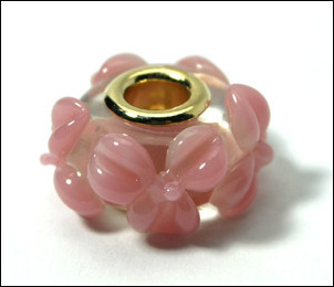 Pandora style lampwork bead – large hole w/gold plated core, 1pc.