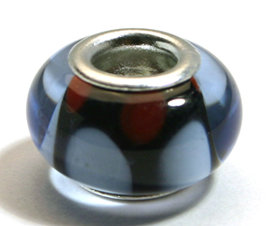 Pandora style lampwork glass bead – 13x9mm large hole w/silver plated core