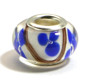 Pandora style lampwork glass bead – 13x9mm large hole w/silver plated core