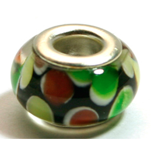 Each bead measures approximately 9 x 13mm, but can vary slightly as they are handmade. These extremely popular and fashionable beads are designer quality in a delightfully wide array of colors and designs at fantastic low prices. Because of the large hole (6mm) and plated metal core, you can use these beads with almost any stringing material you can imagine. They are also compatible with Pandora, Troll and other large hole glass beads. Simply pair with our selection of pewter Chimera Beads and string on one of our ready-to-wear snakechains for exquisite pieces of jewelry that you will love to wear.