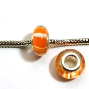 Each bead measures approximately 9 x 13mm, but can vary slightly as they are handmade. These extremely popular and fashionable beads are designer quality in a delightfully wide array of colors and designs at fantastic low prices. Because of the large hole (6mm) and plated metal core, you can use these beads with almost any stringing material you can imagine. They are also compatible with Pandora, Troll and other large hole glass beads. Simply pair with our selection of pewter Chimera Beads and string on one of our ready-to-wear snakechains for exquisite pieces of jewelry that you will love to wear.