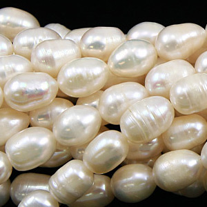 Bead, Pearl Cultured Fresh water, Cream, 8x11mm Rice Shape B Grade