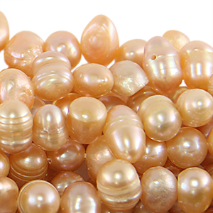 Bead, Pearl Cultured Freshwater, Peach, 7-8mm Rice Shape Top Drilled