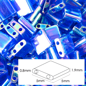 Miyuki Japanese Seed Bead, Tila Glass Bead, 5x5x1.9mm square 2 holes (Hole size 0.8mm) – Dark Blue Rainbow Transparent