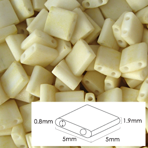 Miyuki Japanese Seed Bead, Tila Glass Bead, 5x5x1.9mm square 2 holes (Hole size 0.8mm) – Ivory Matte Opaque Satin