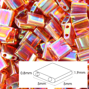 Miyuki Japanese Seed Bead, Tila Glass Bead, 5x5x1.9mm square 2 holes (Hole size 0.8mm) – Golden Brown Rainbow Transparent