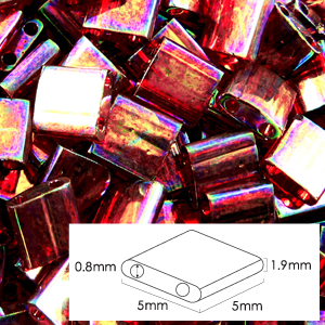 Miyuki Japanese Seed Bead, Tila Glass Bead, 5x5x1.9mm square 2 holes (Hole size 0.8mm) – Dark Topaz Rainbow Transparent