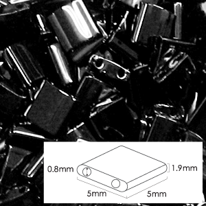Miyuki Japanese Seed Bead, Tila Glass Bead, 5x5x1.9mm square 2 holes (Hole size 0.8mm) – Black Opaque