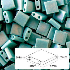 Miyuki Japanese Seed Bead, Tila Glass Bead, 5x5x1.9mm square 2 holes (Hole size 0.8mm) – Turquoise Matte Rainbow Opaque