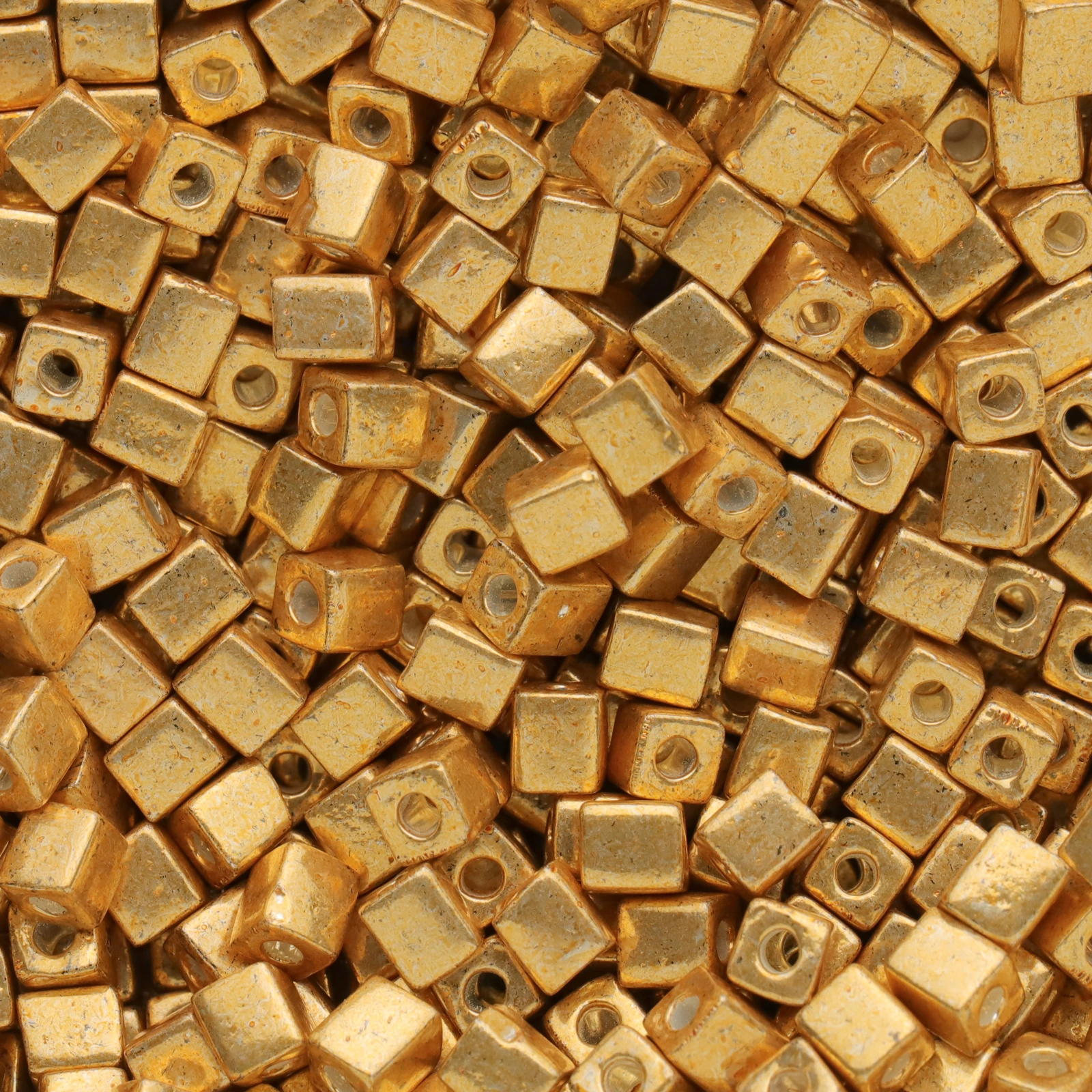 Miyuki Japanese Seed Bead, Square 4x4x4mm (Hole size 1.5mm) – Metallic – Gold