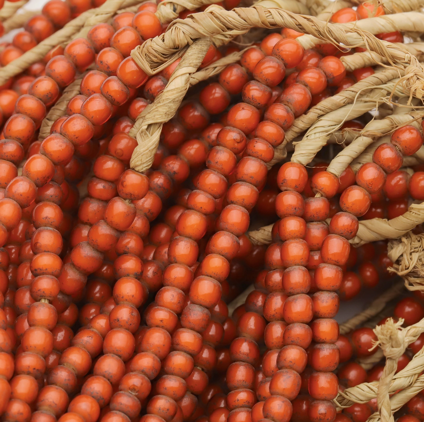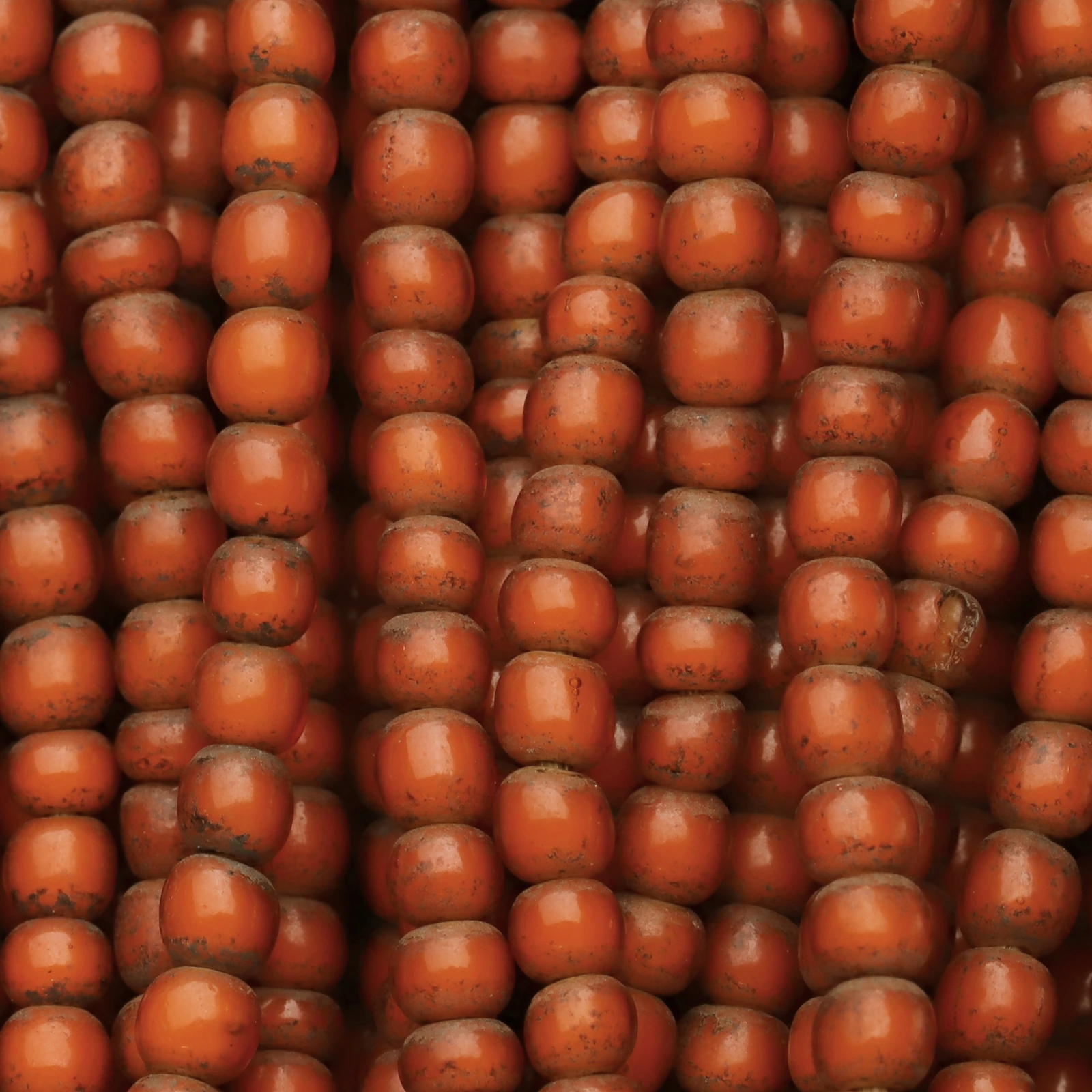 African Seed Beads- White Hear Orange 22 inch Strands Approximately 3.5-4mm ( hole size: 1-1.3mm)