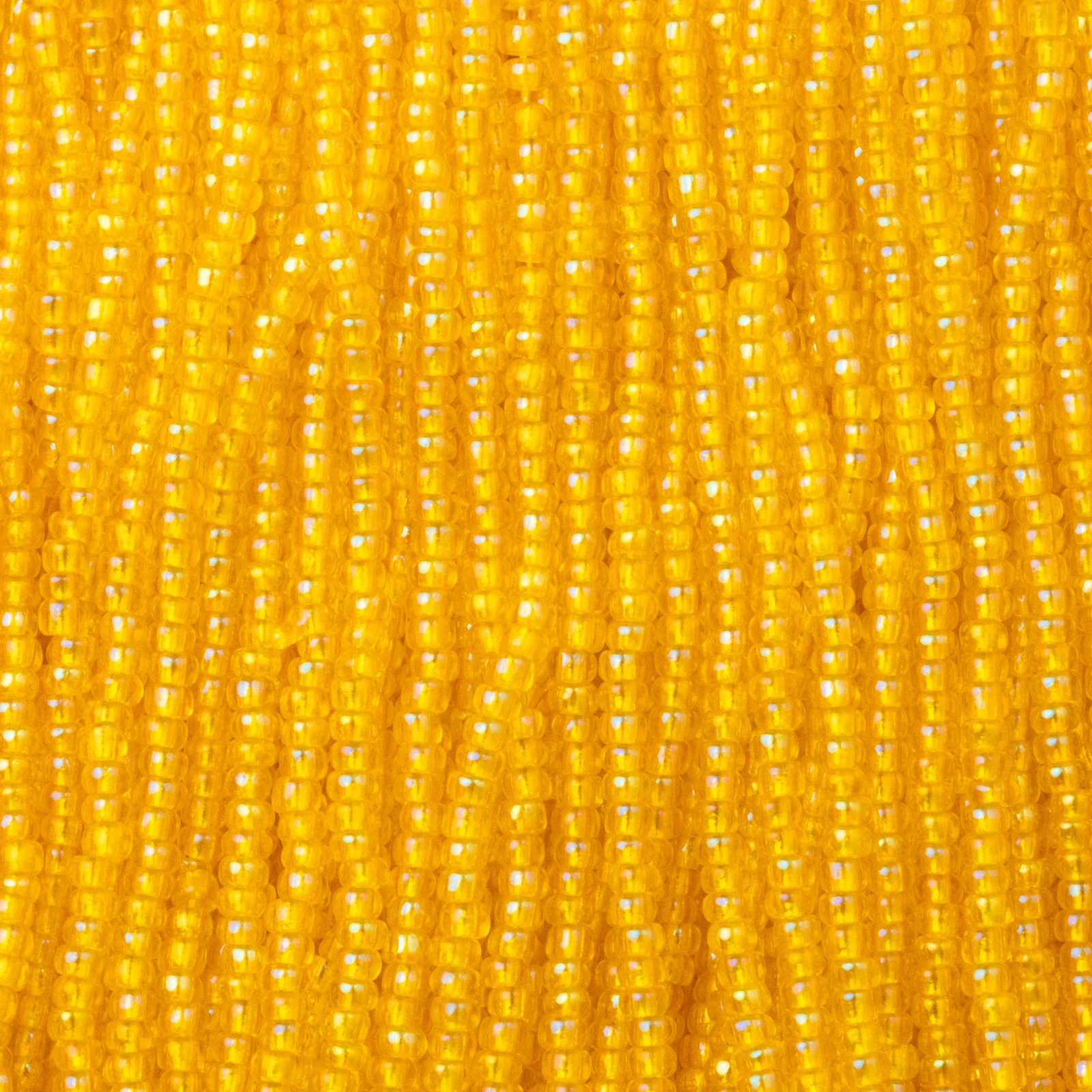 Czech Seed Beads, 11/0 – Transparent Rainbow Dark Yellow (strung)