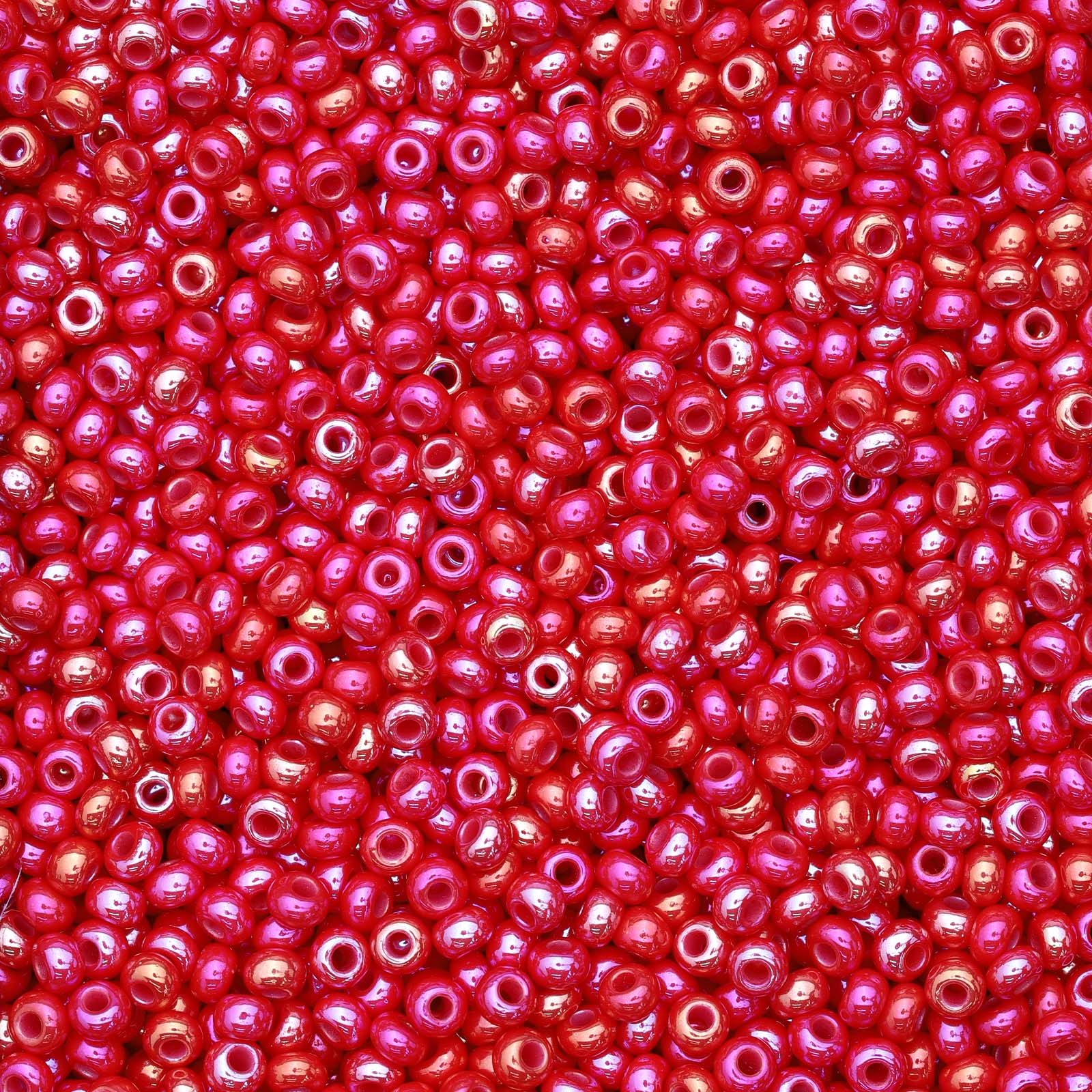 Czech Seed Beads, 10/0 – Opaque Rainbow Red (loose)