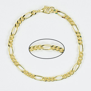 Chain bracelet gold plated in a figaro link design that is very attractive with a claw clasp. It is perfect to add beads or charms to it.