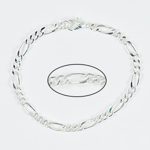 Chain bracelet silver plated in a figaro link design that is very attractive with a claw clasp. It is perfect to add beads or charms to it.