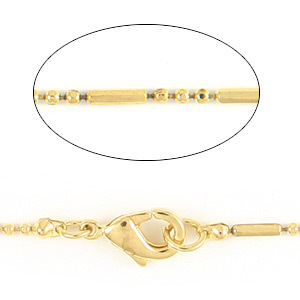 Chain, finished necklace 18 inches, Gold plated brass, 1.5mm ball and 6mm tube