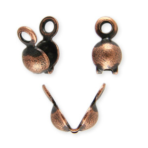 Bead Tip, 7×3.5mm Clamshell Bead Tip with 2 Closed Loop (Double Loop) – Antique Copper Plated Brass