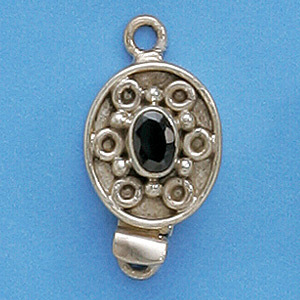 Bali Silver Oval Clasp, 25x13mm with Blackstone Faceted