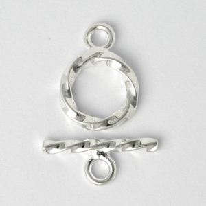 Toggle Clasp, 14mm Round Toggle Clasp with bar length 18mm in twisted design in Sterling Silver.925