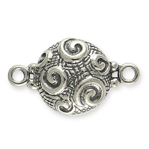 Magnetic clasp with swirl design on both sides and 2 loops ore on each side. It has a strong magnet. Use this clasp for any necklace or bracelets and it’s easy to take on and off.