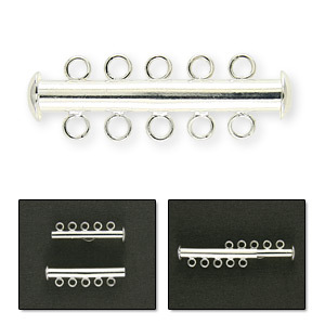 Clasp with slide lock for 5 strands. These two pieces slide together as a clasp and stay together. Use this clasp to create a multi strand necklace or bracelet. Perfect for pearls and all other beads loops are 3mm apart. Use spacer bars to keep beads from tangling.